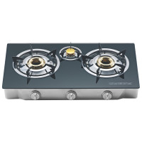 tempered glass top, stainless steel stove body, brass burner cap, enamel pan support